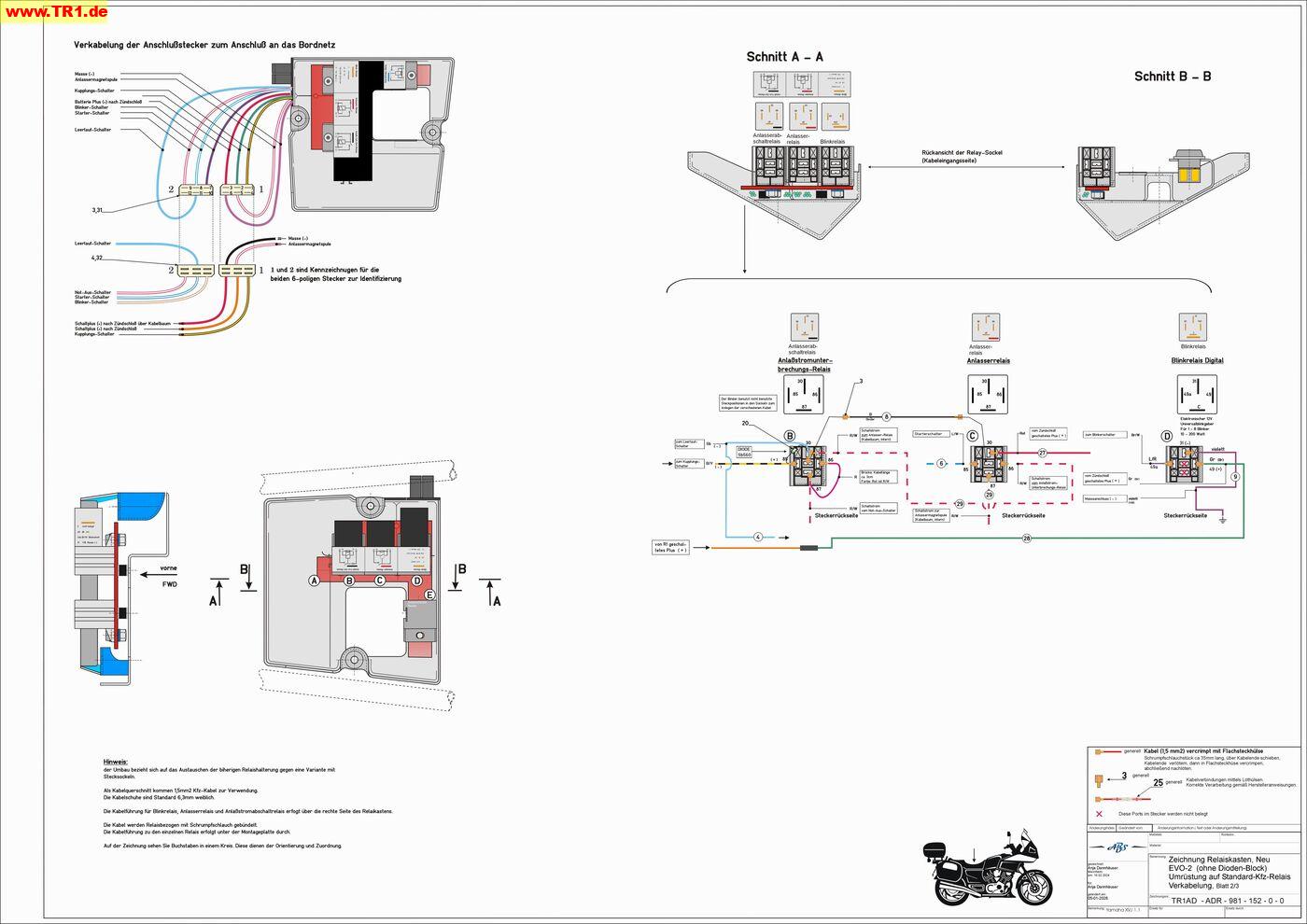 Die meisten Relais haben ein Schaltbild aufgedruckt (nicht alle > Yamaha),